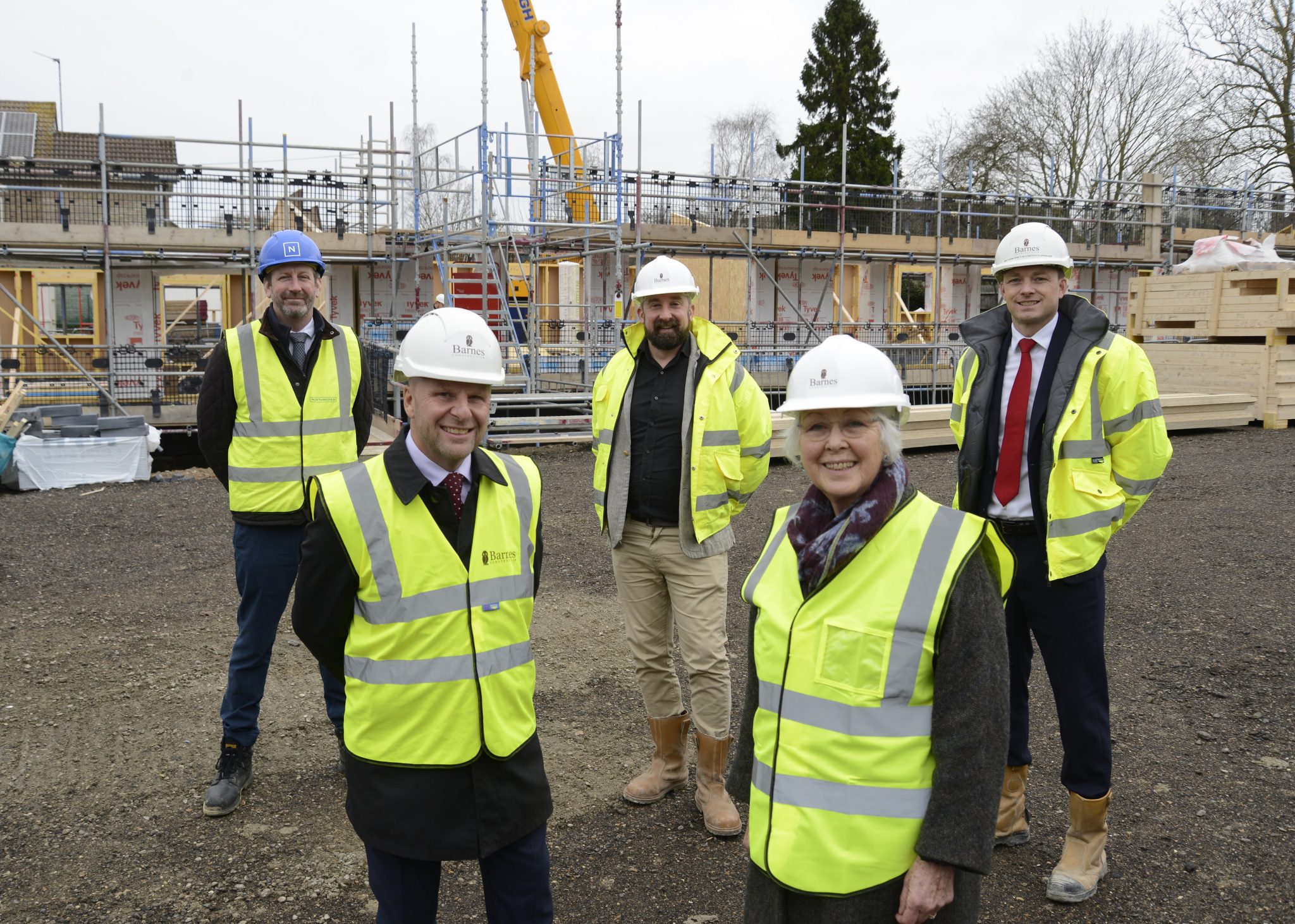 Girton Town Charity (GTC) joined with contractor Barnes Construction, Mole Architects and Northmores Project Managers to mark a key stage in the building programme at Dovehouse Court, with the erection of timber frame panels which will provide the structure for the new energy-efficient homes.