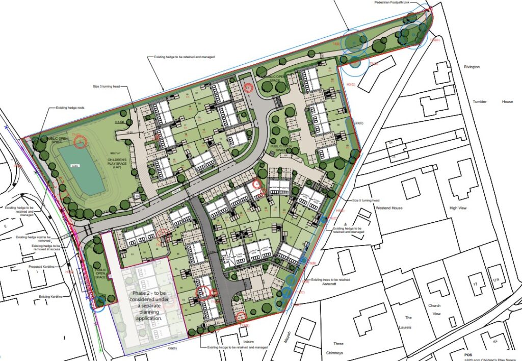 The 51 homes will be arranged around a main cul-de-sac and smaller side roads, with a new children’s play area and public space also set to be built along New Sporle Road.