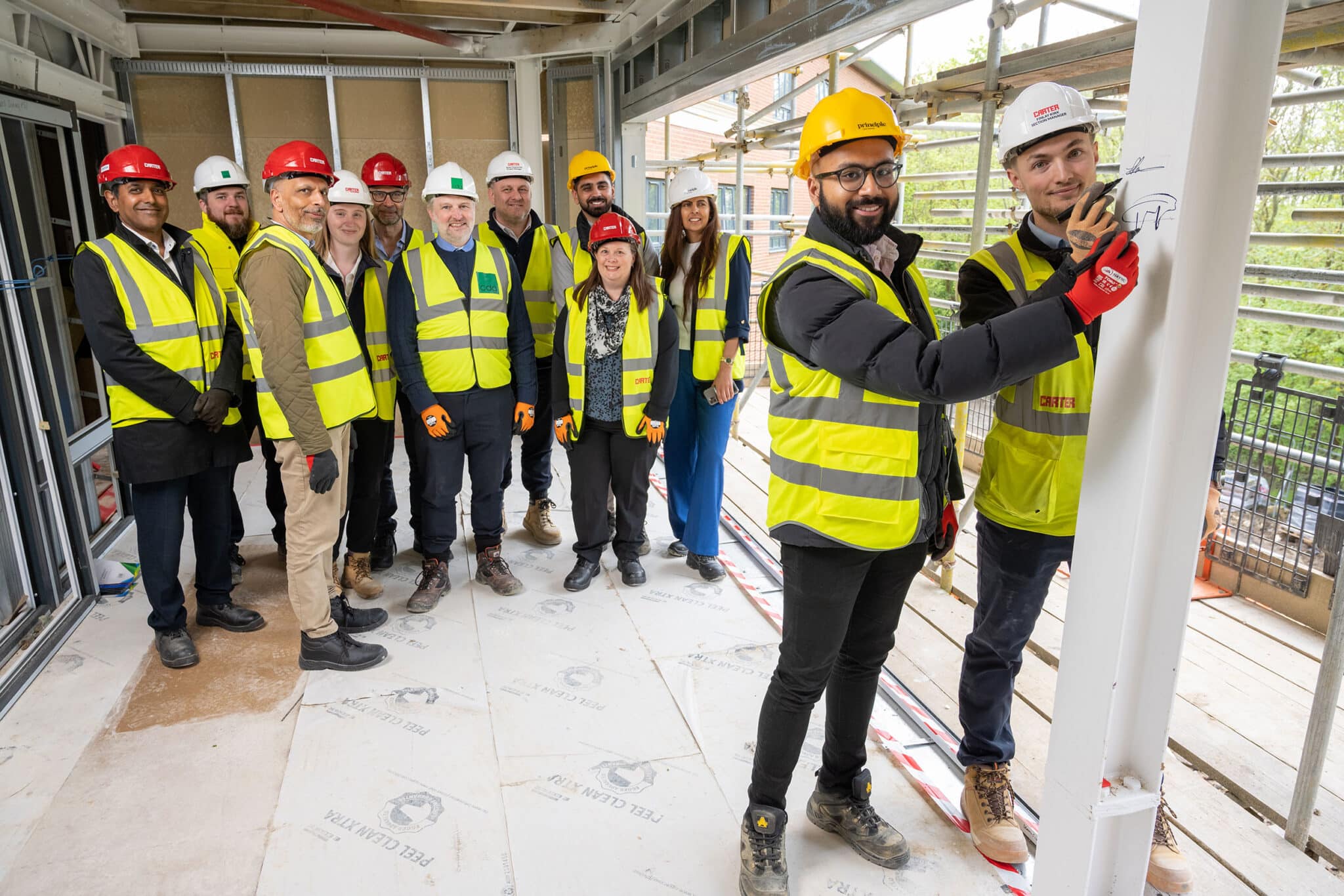 Hosted by East of England construction company R G Carter, the team joined members of the Principle Care Homes team, Coutts bank and CDG, to celebrate the completion of the steel structure of the building after nine months of work.