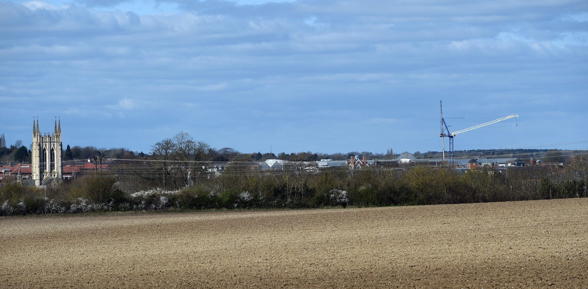 St Andrews Street South between Woolhall Street and Brentgovel Street was shut for 48 hours to allow the tower crane to be delivered to the site in sections using articulated low loaders. A smaller 35-tonne mobile crane was then used to lift and land the sections to form the tower, and the slewing ring and cab were then put on top. The main jib, which is 40 metres long, was assembled on the road before being lifted into place.