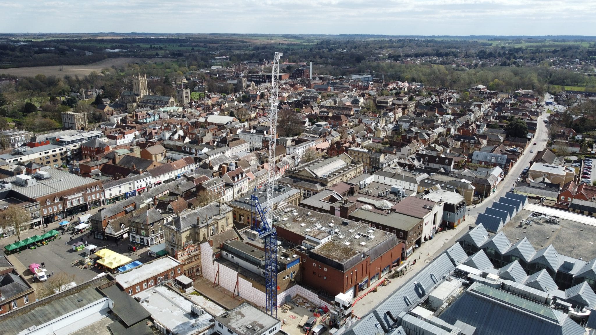 A milestone in the redevelopment of the former Post Office on Bury St Edmunds Cornhill has taken place this week with the installation of an 18-metre-high tower crane.
